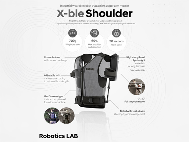 X-ble Shoulder, primo prodotto della linea X-ble, è un robot industriale indossabile sviluppato dal Robotics LAB di Hyundai Motor e Kia. Inaugura una nuova era nella tecnologia indossabile. Nelle operazioni che richiedono di tenere le braccia alzate, aiuta a ridurre lo sforzo muscolare compiuto e riduce il carico sul sistema muscoloscheletrico degli arti superiori.